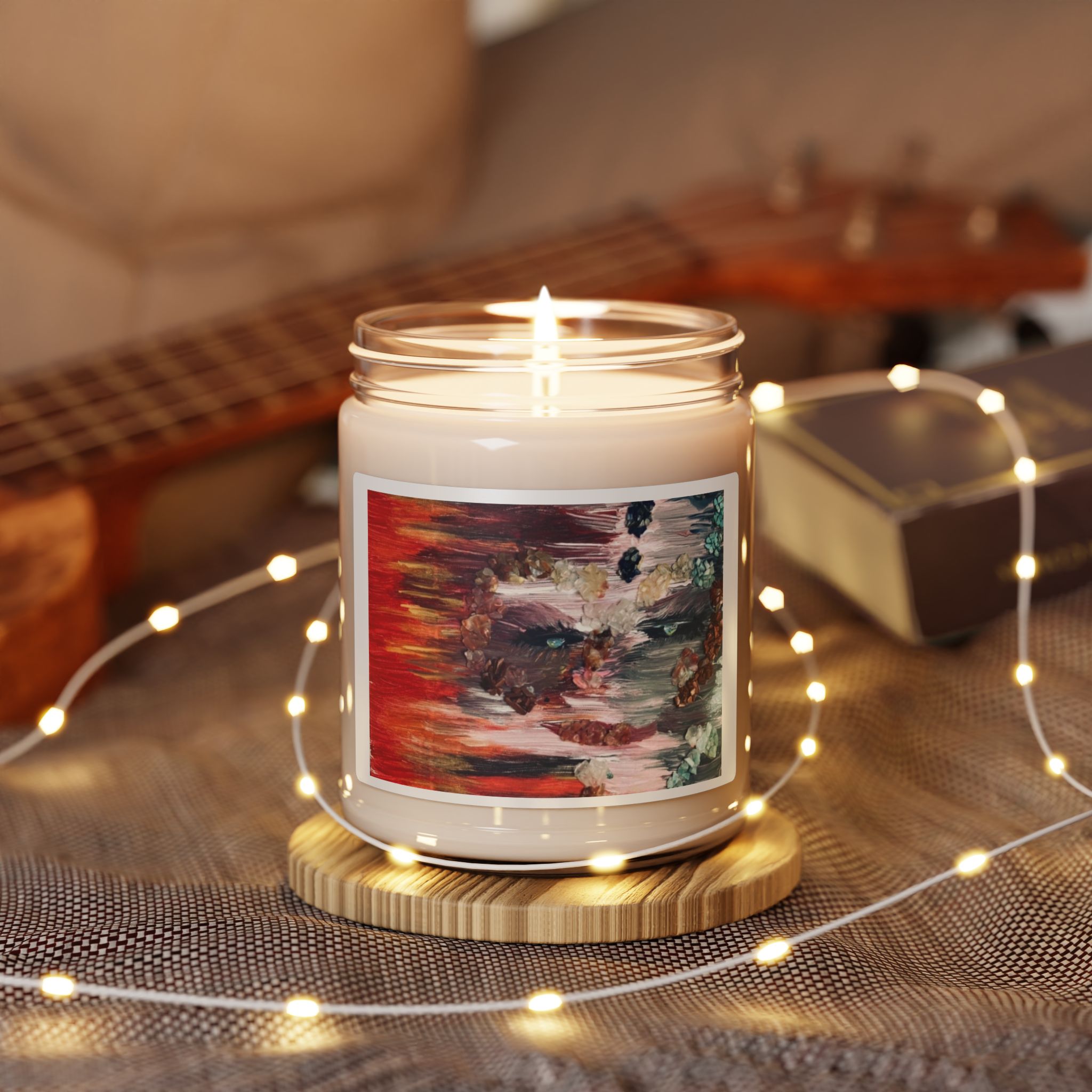 Soy candle featuring artwork from the poetry book I’m With You.